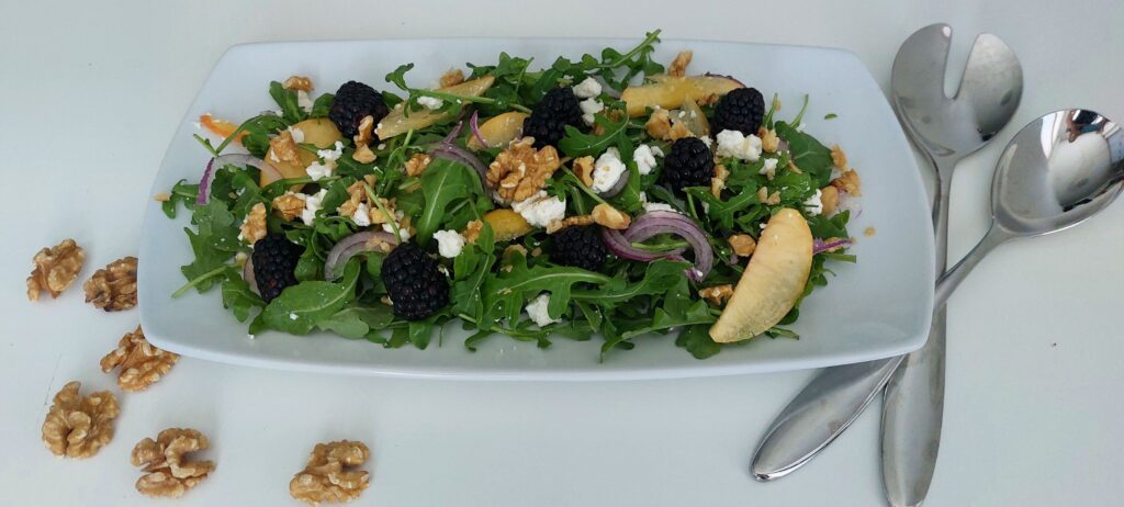 La Forchetta di rame, Insalata con feta, noci, pesche e more