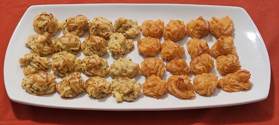 Inserite il composto (prima uno e poi l’altro) in una sac à poche, con il beccuccio a stella e, su una teglia rivestita di carta forno, realizzate le vostre Patate duchessa della dimensione che preferite.