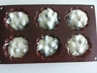 Versate in uno stampo da muffin (2) o da pasticcini (3) e cuocete in forno preriscaldato a 200° per 20 minuti (qualche minuto in meno se usate lo stampo da pasticcini) e poi per altri 10-15 minuti a 170°.