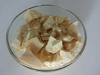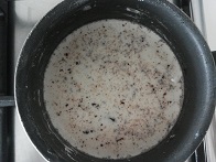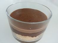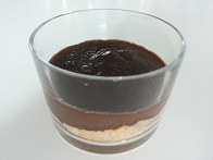Tritate grossolanamente il cioccolato fondente (4). Riscaldate in un pentolino 200 ml di latte e 150 ml di panna fresca; aggiungete una bustina di Tortagel e il cioccolato (5). Lasciate sul fuoco per alcuni minuti (girando con un cucchiaio) fino a quando il composto diventerà denso (ci vorranno circa 3 minuti dalla bollitura). Poi versatelo nelle coppette sopra lo strato di biscotti e burro (6).