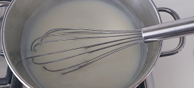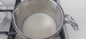 Per realizzare la vostra Crema al latte, iniziate versando il latte in un pentolino sul fuoco: fatelo riscaldare senza farlo bollire; aggiungete poi la vanillina e lasciatela sciolgliere.