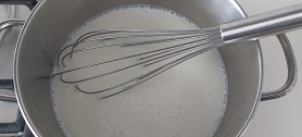 Accendete poi il fuoco e continuate a mescolale con la frusta finché la Crema al latte si sarà addensata. Ci vorranno 5 minuti.
