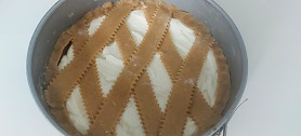 Stendete poi la vostra Pasta frolla alla cannella in una tortiera, precedentemente imburrata, e bucherellatene il fondo con una forchetta. Versatevi poi la vostra crema alla ricotta e decorate la superficie con le classiche losanghe (o con altre forme se lo desiderate).