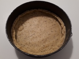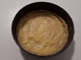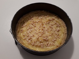 Riempite lo stampo di pasta frolla con la crema al limone (2) e cospargetene la superficie con i pinoli (3).