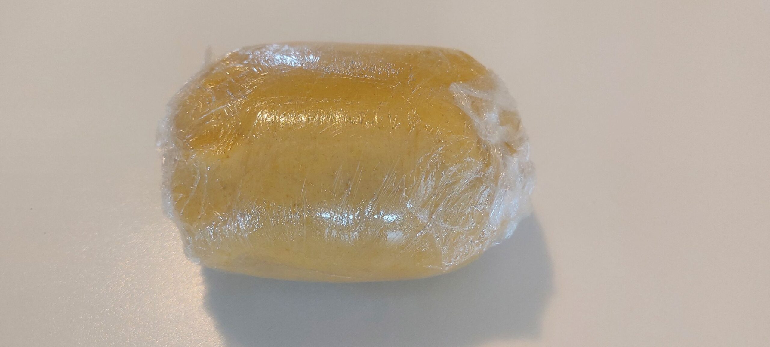 Una volta pronta la vostra Pasta frolla morbida lievitata, avvolgete il panetto ottenuto nella pellicola trasparente e lasciatelo riposare in frigorifero per un’ora.