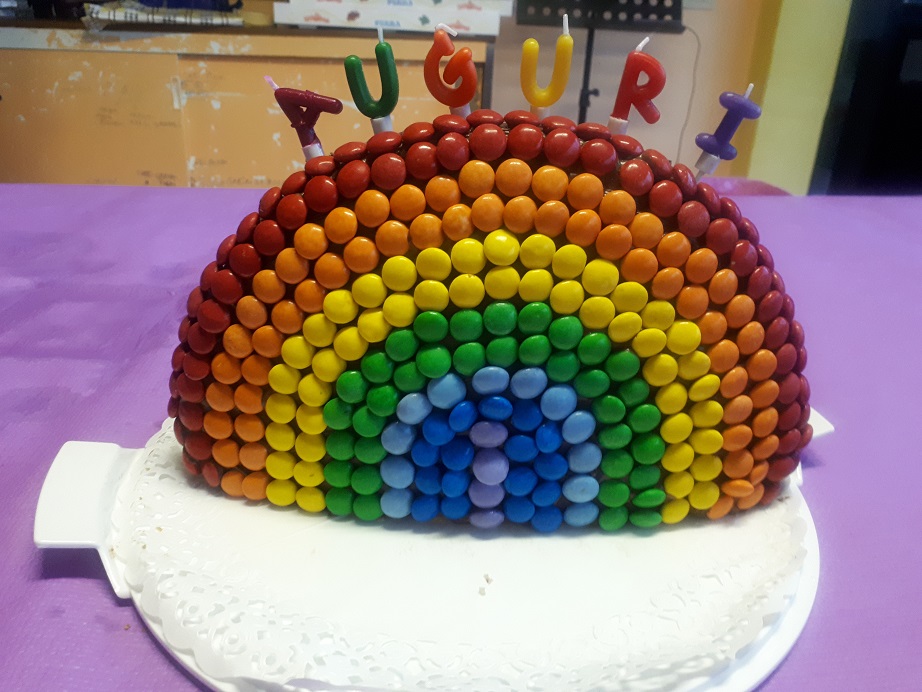 È la torta arcobaleno più bella che abbia mai visto!!!! 😍 Complimenti.  Se trovo gli ingredienti te la copio, grazie infinite!  Non ho capito solo una cosa. Per i confettini colorati dici di usare x e y, perché x non ha tutti i colori. Perché non usare solo y? È solo curiosità la mia perché il mio supermercato ha solo una marca di confettini, e non ricordo mai quale sia 🙄, non ho scelta, però sono curiosa 🤗 Grazie ciao Daniela