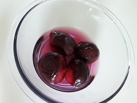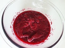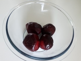 Mettete le barbabietole in una ciotola (1) e aggiungete l’acqua (2), quindi frullate (3).