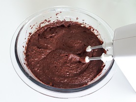 Lavate bene l’arancia, grattugiatene la scorza (4) e spremetene il succo. Aggiungete alle barbabietole frullate la scorza grattuggiata, il succo dell’arancia, il cacao amaro (5) e l’olio, quindi amalgamate il tutto (6)
