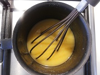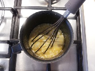 Per circa 5 minuti non succederà nulla poi la crema inizierà ad addensarsi (4).