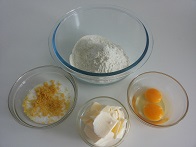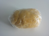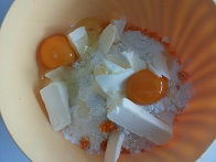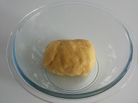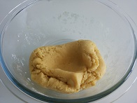 Amalgamate energicamente tutti gli ingredienti usando il burro ammorbidito a temperatura ambiente (1), finché otterrete un impasto liscio (2), con cui creerete un panetto (3) che avvolgerete nella pellicola trasparente (4).