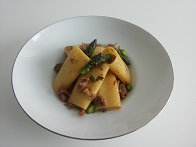 Lavate gli asparagi e tagliateli a pezzetti; lessateli direttamente insieme alla pasta (1).