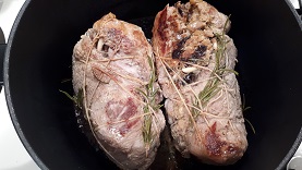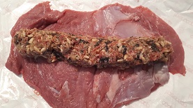Arrosto di vitello farcito con salsiccia, castagne, prugne e pinoli