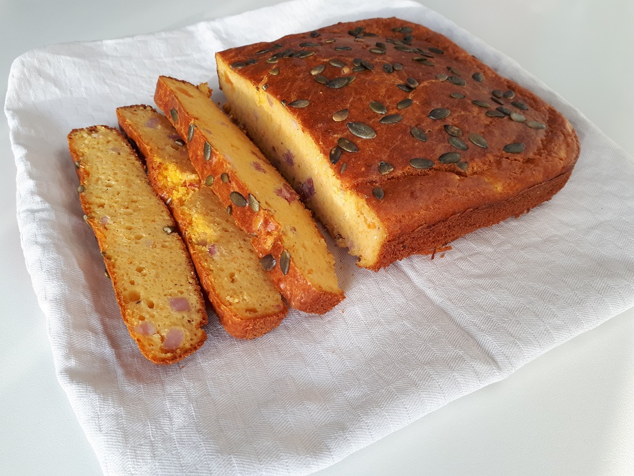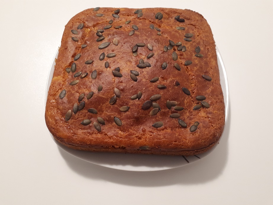 Mettete il composto in una teglia imburrata e infarinata e cospargete a piacere di semi di zucca (5).