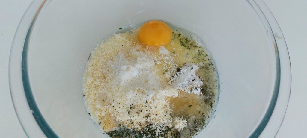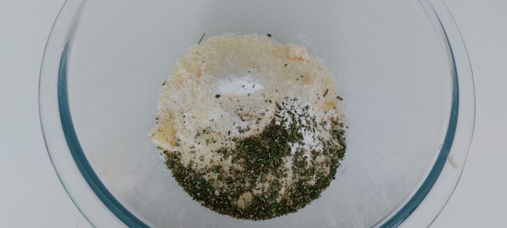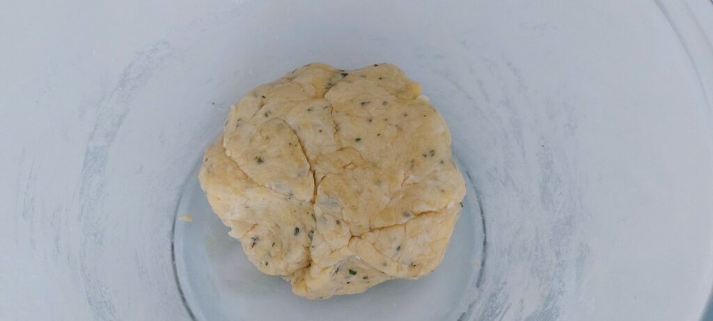 Poi mettete in una ciotola la farina, il formaggio grattugiato, il rosmarino tritato, il sale, il lievito.