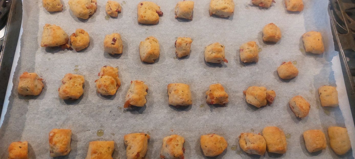 lasciate cuocere in forno preriscaldato a 180° per circa 18 minuti (dipenderà dalle dimensioni dei salatini), finché risulteranno leggermente dorati.