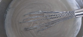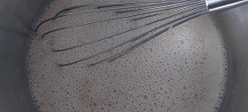Versate poi a filo il latte di mandorle e mettete sul fuoco. Vi consiglio di mescolare con una frusta a mano per evitare i grumi.
