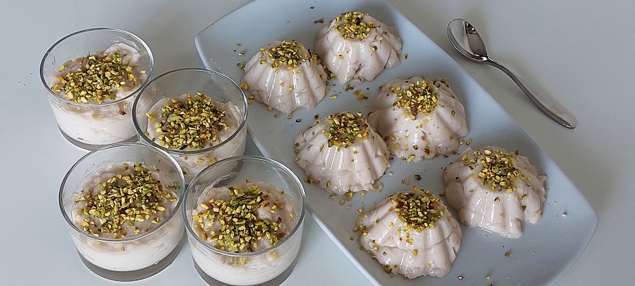 Trascorso il tempo, toglietelo dalle formine, a meno che abbiate usato dei bicchierini da monoporzione e decorate poi con la granella di pistacchi.
