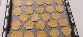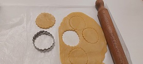 Trascorso il tempo, stendetelo con l’aiuto di un mattarello dello spessore di 3-5 mm e realizzate con una formina i dischetti, che disporrete su una teglia rivestita di carta forno.