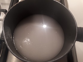 Lasciatelo sul fuoco medio-basso finché non risulterà ambrato: ci vorranno circa 10 minuti (3). Poi dovreste immergere la base del pentolino in acqua fredda per pochi secondi per bloccarne la cottura e poi utilizzarlo. Io però mi trovo più comoda a lasciarlo sul fuoco bassissimo (al minimo del fornello più piccolo!), perché tende ad indurirsi subito (una volta indurito bisogna comunque metterlo sul fuoco per ammorbidirlo nuovamente).