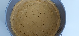 Trascorso il tempo necessario di riposo in frigorifero, stendete la pasta frolla in una teglia imburrata e bucherellate il fondo con i rebbi di una forchetta.