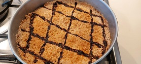 Con l’aiuto di uno stuzzicadenti usate della marmellata per disegnare la griglia sulla superficie.