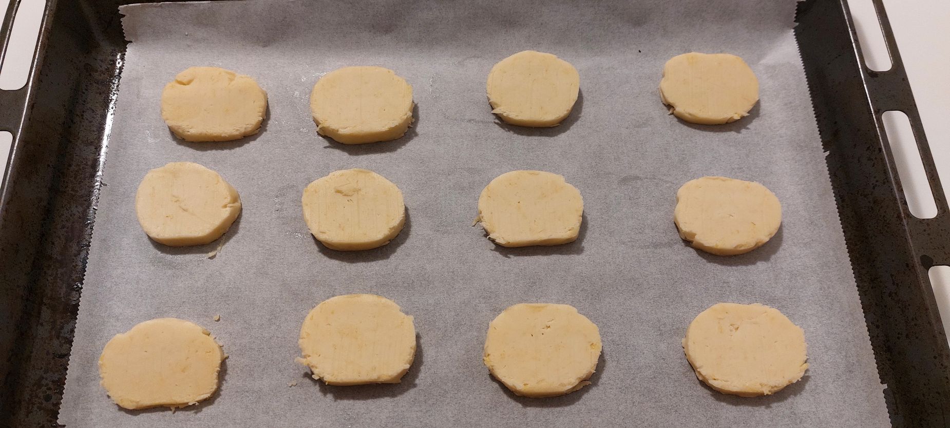 Prendete il vostro rotolo e tagliate delle fette dello spessore di circa 1 cm, poi disponete i vostri Lemon Meltaways su una teglia rivestita da carta forno.