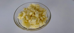 Per realizzare la vostra Torta di patate (senza glutine e lattosio), iniziate tagliando le patate a pezzetti e lessandole in acqua – non salata – per circa 15 minuti.