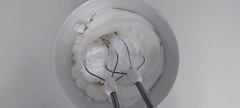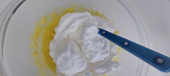 A questo punto incorporate gli albumi, mescolando delicatamente con un cucchiaio, dal basso verso l’alto per evitare che si smontino.