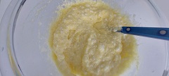 Montate i tuorli con lo zucchero, aggiungete la scorza di limone grattugiata e, quando il tutto risulterà amalgamato, unite anche le patate schiacciate.