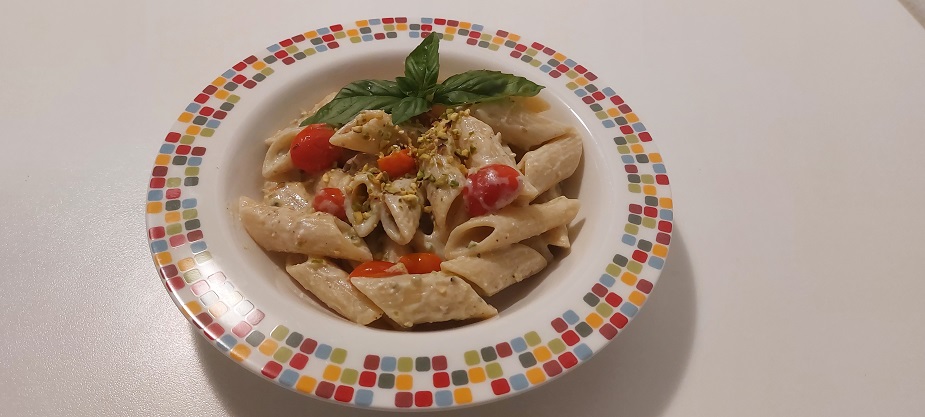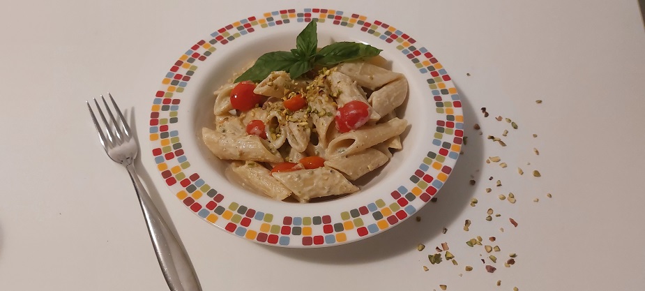 La Forchetta di rame, Pasta con crema di ricotta, pistacchi e pomodorini