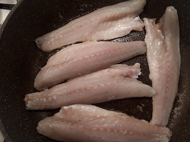 Sciacquate bene i filetti di branzino, poi sciogliete in una padella sul fuoco una noce di burro. Trasferite nella padella i filetti di Branzino appoggiandoli dalla parte della pelle: in questo modo dopo 2-3 minuti, quando girerete i filetti, riuscirete comodamente a eliminare la pelle con una forchetta (verrà via molto facilmente).